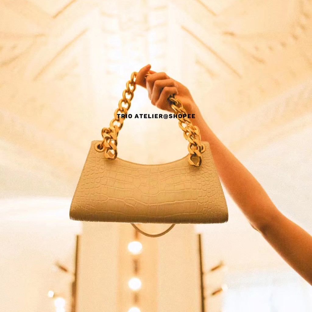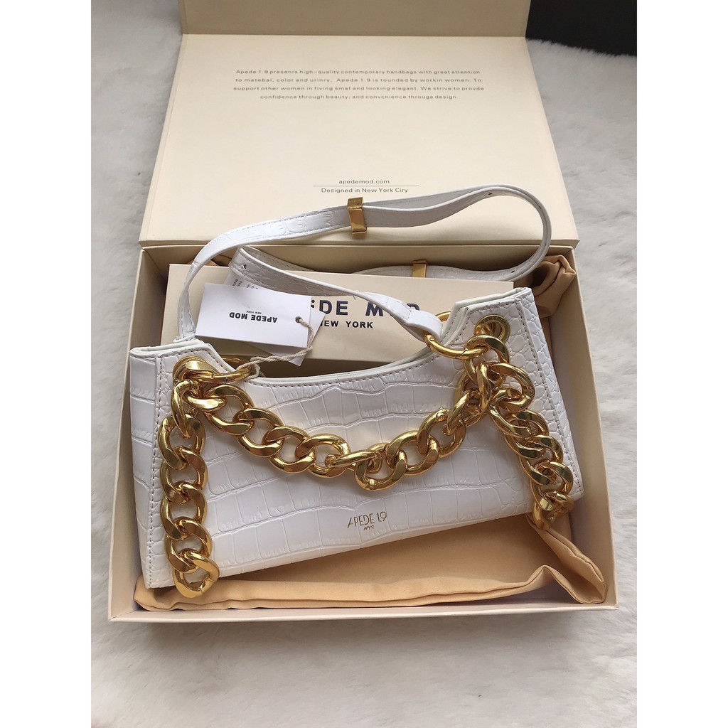 Apede Mod White Croc Froggy Leather Shoulder Baguette Bag With Gold Chain Shopee Malaysia